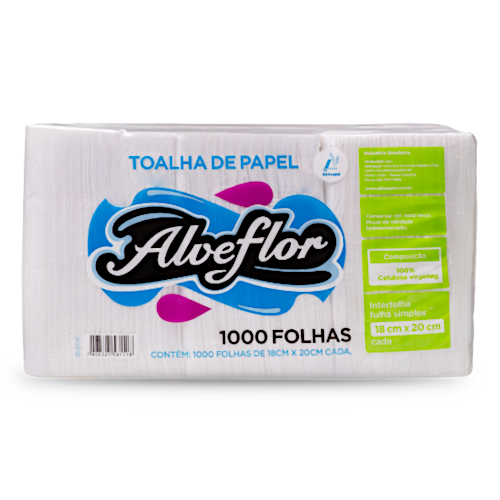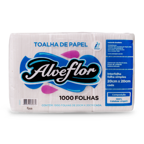 Pacote plástico com 1000 folhasAlveflor Interfolha 20x20