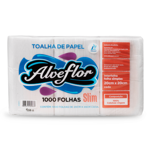 Pacote plástico com 1000 folhasAlveflor Interfolha Slim 20x20