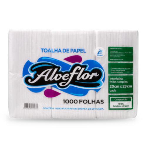 Pacote plástico com 1000 folhasAlveflor Interfolha 20x23
